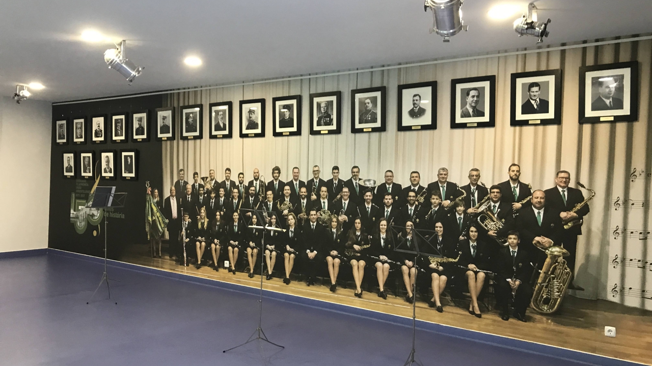 Exemplo a requalificação da sala de ensaios e ensino da música, onde foi feita uma instalação fotográfica, em homenagem a todos os maestros que ao longo da história têm dirigido a sua Banda Filarmónica.
